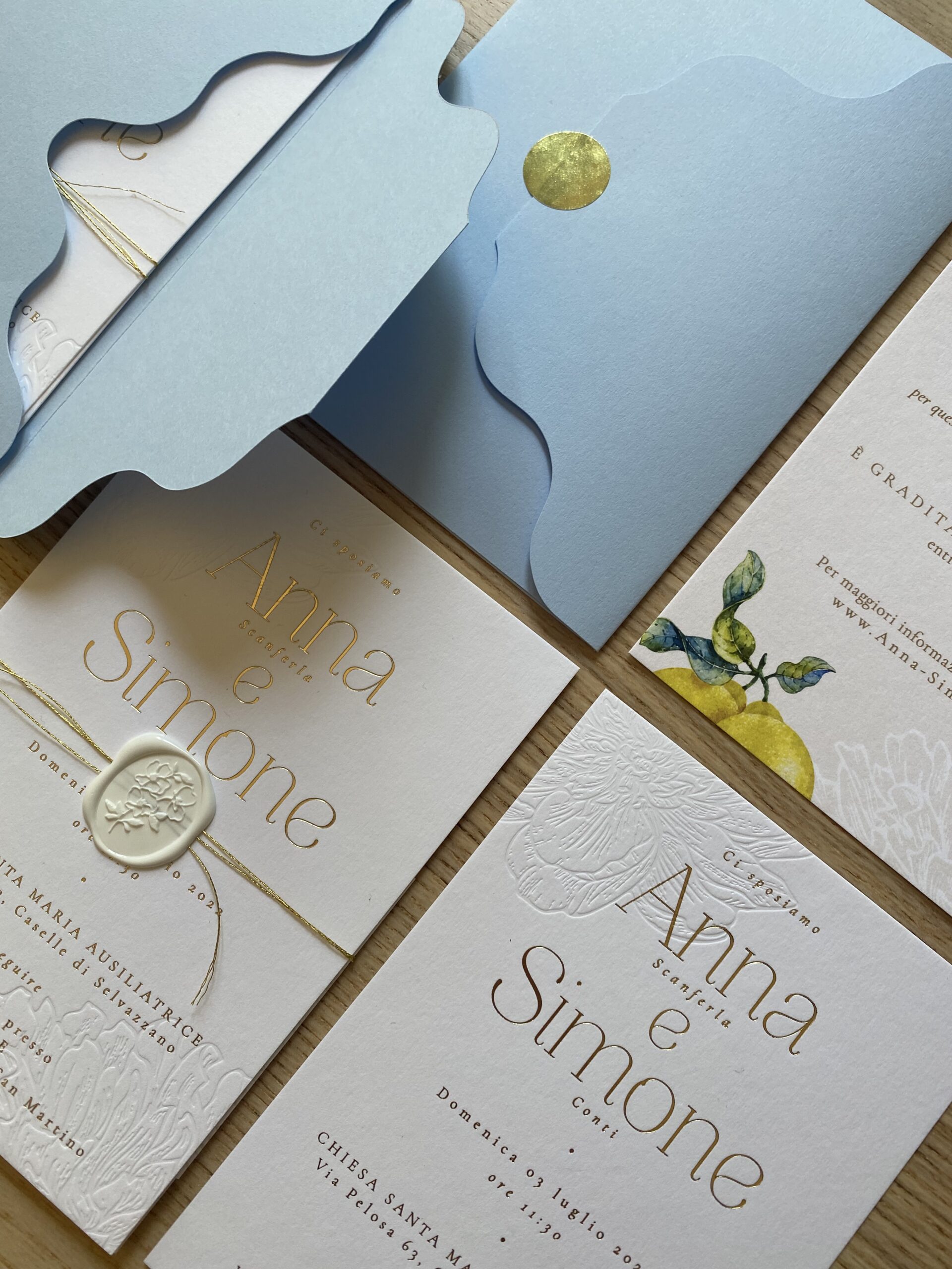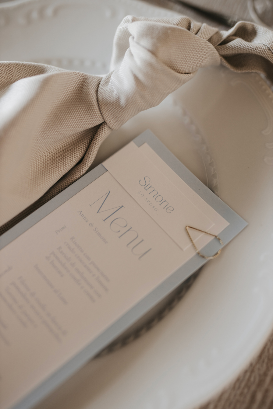 Per Anna & Simone ho realizzato: Invito, Seating Plan, Menu, Place Cards
